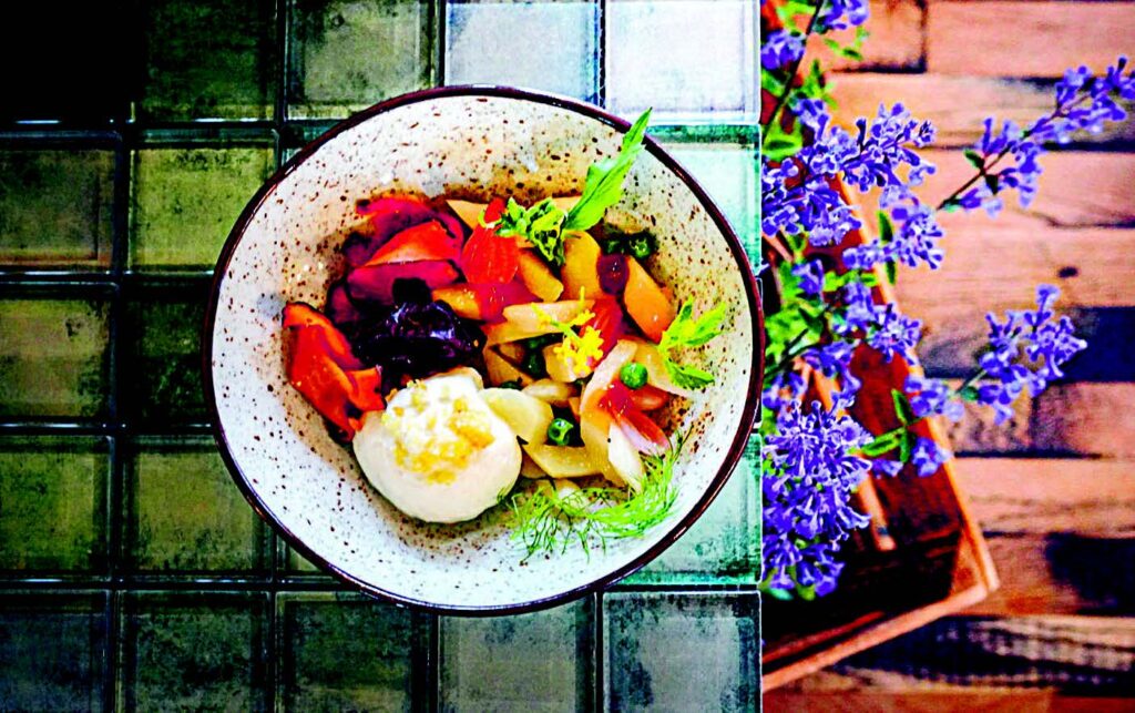 Das Konzept »Entdeckerlust« verzichtete auf Verzicht. Die Veranstaltung stellte bewusst bestehende Denkmuster infrage. Dieser Idee sollte auch das Speisen- und Getränkeangebot folgen. Essen als erlebbares Symbol für eine veränderte Zukunft. Also nicht das typische saftige gute Stück Fleisch als Ausdruck des höchsten Genusses. Nein, neue Wege auch am Buffet und auf dem Teller. In der gehobenen, kreativen Küche sind vegane Speisen schon lange nicht mehr Alibi-Gerichte, sondern häufig längst Highlight des kulinarischen Angebots. Das können auch mal ein raffinierter Gemüseschinken oder ein lackierter Blumenkohl sein.